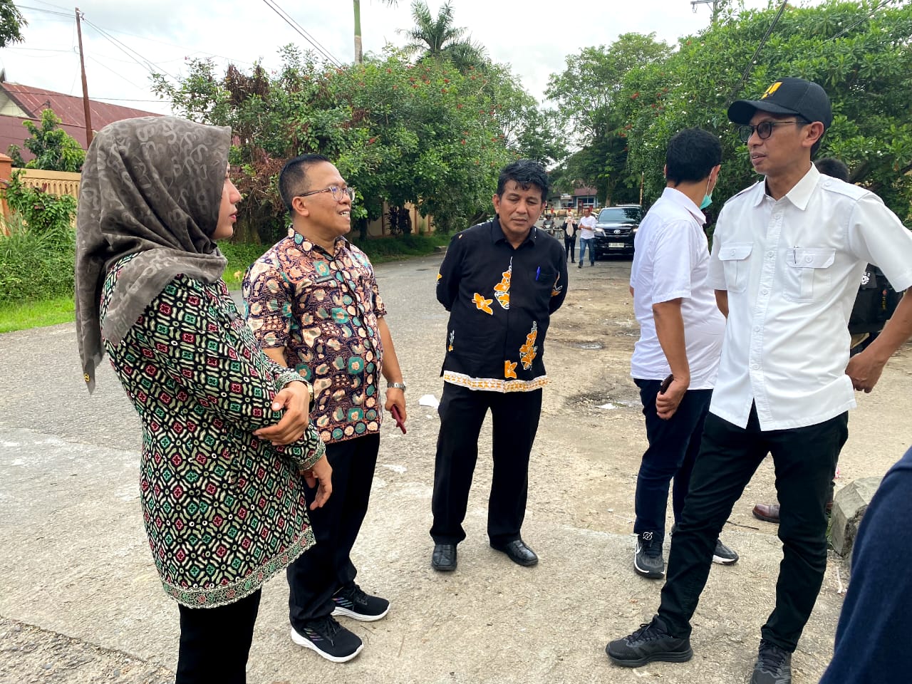 Selesai pertemuan, tim dari BPPW Jambi langsung melaksanakan survei di sekeliling Taman Puspa Ragam, Kecamatan Pasar Muara Bungo. Tampak hadir mendamping Tim Survei antara lain Kepala Dinas Koperasi Usaha Kecil Menengah (UKM) dan Perindustrian Perdagangan Drs. Supriyadi, Kepala Dinas Perumahan dan Kawasan Permukiman (PKP) Redawati, S.P., M.E. beserta staf, Sekretaris Bappeda Iman Budisetiawan, S.Hut., M.A.P, Kepala Bidang Ekonomi Bappeda Dr. Auri Adham Putro, S.Sos., M.Si, Kepala Bidang Sarana dan Prasarana Bappeda Yusron, S.H., M.Si, Kepala Bidang Penelitian dan Pengembangan Bappeda Supardi, S.AP., M.A.P., dan Perencana Ahli Pertama Bappeda Rika Sriyani, S.T.