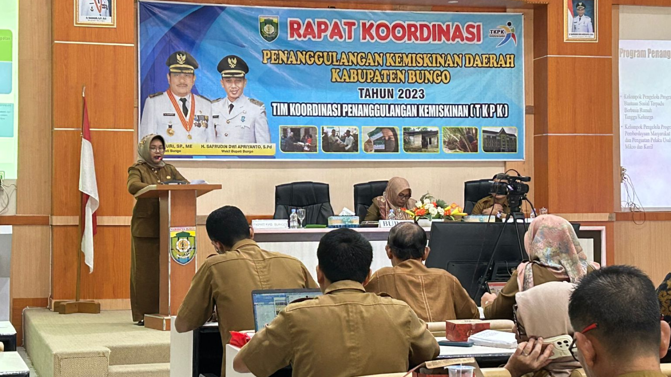 Pada Rakor yang dilaksanakan selama 1 hari tersebut, Kepala Bappeda Kabupaten Bungo H. Deddy Irawan, SE, MM yang diwakili oleh Kabid Sosbud, Dewi Rejeki, S.Pt, MM memaparkan tentang Gambaran Kondisi, Arah dan Kebijakan Penanggulangan Kemiskinan di Kabupaten Bungo, dimana berdasarkan data yang dirilis BPS dan Pusdatin Kemensos RI, angka kemiskinan di Kabupaten Bungo menurun dari 6,44 % pada tahun 2021 menjadi 5,38 % pada tahun 2022. Angka Kemiskinan Kabupaten Bungo juga konsisten berada dibawah angka kemiskinan Provinsi dan Angka Kemiskinan Nasional.