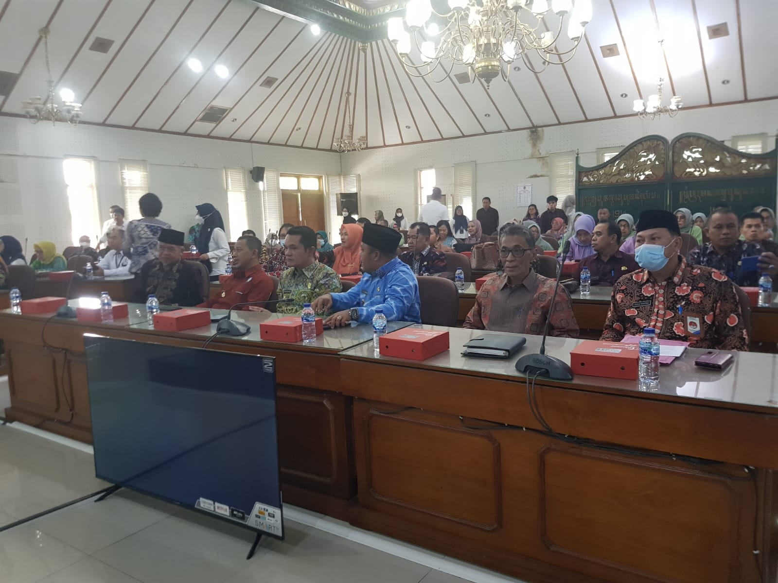 Tim Percepatan Penurunan Stunting (TPPS) Kabupaten Bungo yang di Ketuai oleh Wakil Bupati Bungo Bapak H. Safrudin Dwi Apriyanto beserta Anggota Tim Teknis Penurunan Stunting Kabupaten Bungo dan Tim Penggerak PKK Kabupaten Bungo, Rabu tanggal 04 Oktober 2023 mengikuti Kegiatan Studi Tiru ke Provinsi Daerah Istimewa Yogayakarta. Studi Tiru dilaksanakan bersama Ketua TPPS Provinsi Jambi yang di pimpin oleh Wakil Gubernur Bapak H. Abdullah Sani beserta seluruh TPPS Kabupaten/Kota se Provinsi Jambi. Rombongan disambut oleh Sekretaris Daerah Provinsi Daerah Istimewa Yogyakarta Bapak Drs. Beny Suharsono, M.Si. Bertempat di Aula Kantor Bappeda Provinsi DIY, Pemerintah Provinsi DIY memaparkan kebijakan dan program unggulan serta berbagai inovasi yang dilakukan oleh Daerah Istimewa Yogyakarta dalam Percepatan Penurunan Stunting, sehingga DIY mampu menjadi Provinsi Nomor 5 Angka Prevalensi Stunting Terendah di Indonesia.